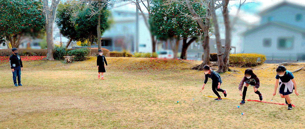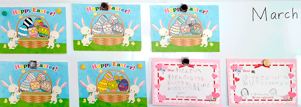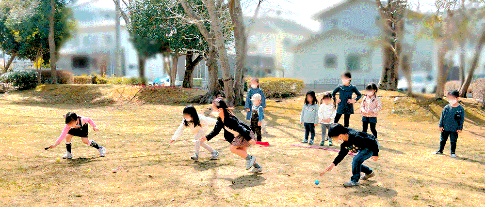 PB(4-5歳児)、PI(小3-4)土曜日クラスの3月最終授業では、イースターにちなんだゲーム「Egg-and-Spoon Race」「Egg Rolling」「Egg Hunt」を行いました!