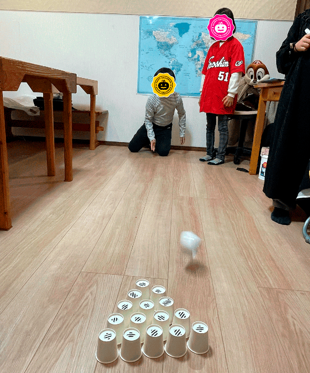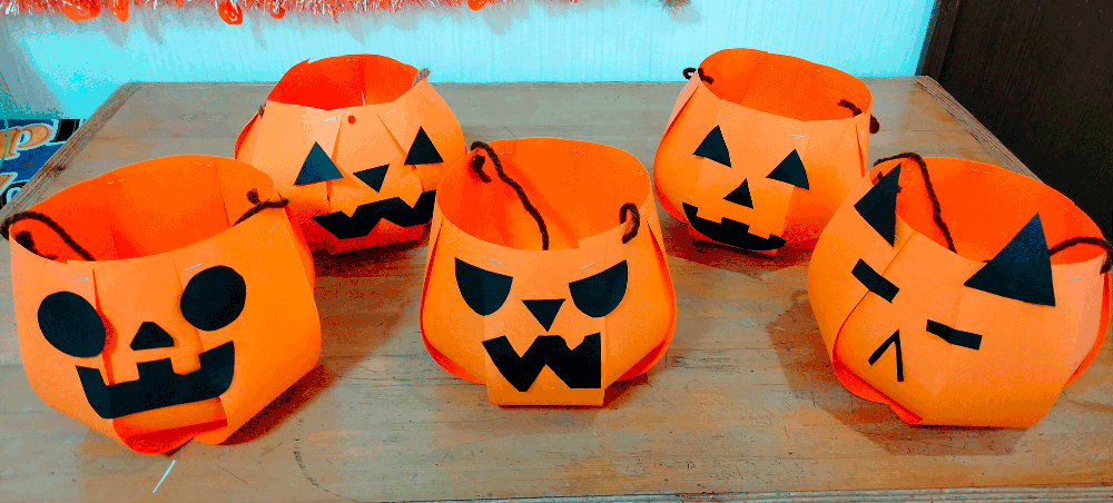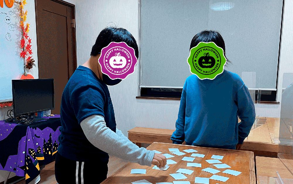 10月最終週、教室では暗闇に光るJack-o-lanternが皆さんを出迎え…小学生以下のクラスではHalloweenお楽しみ会を行いました♪