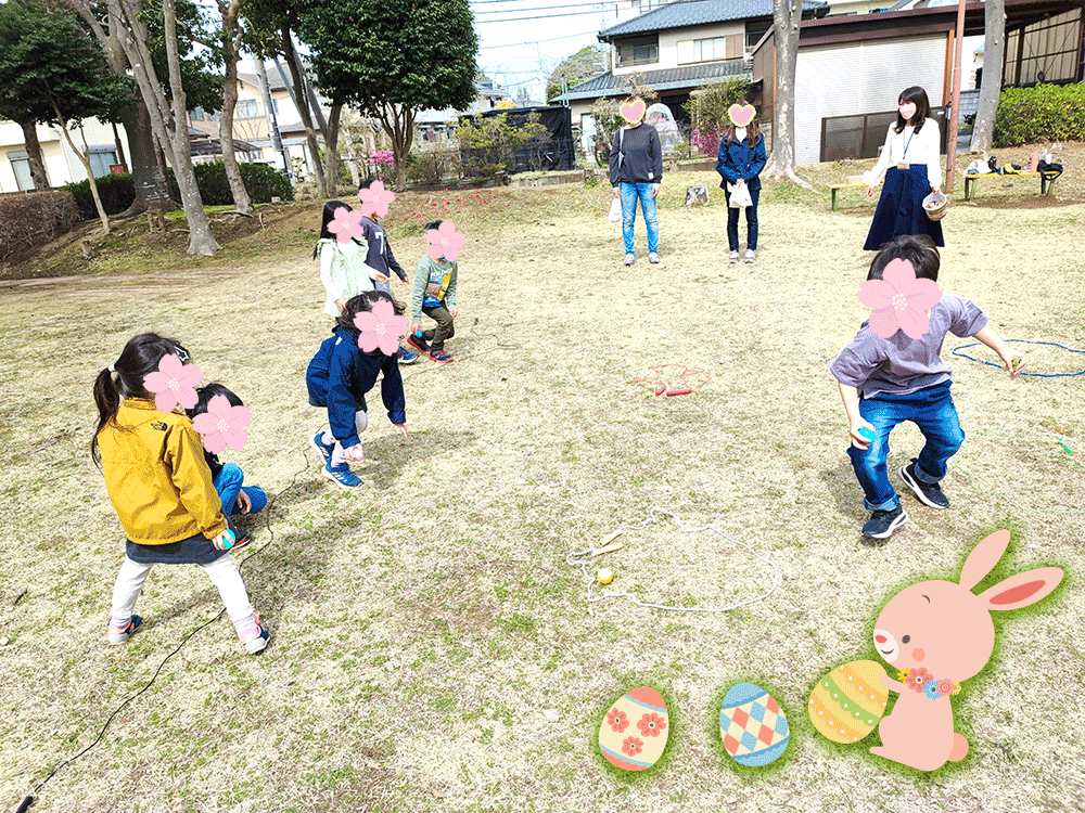 幼児クラス(PT/PB、2-5歳児)は今年も教室近くの公園でイースターイベントを行いました。